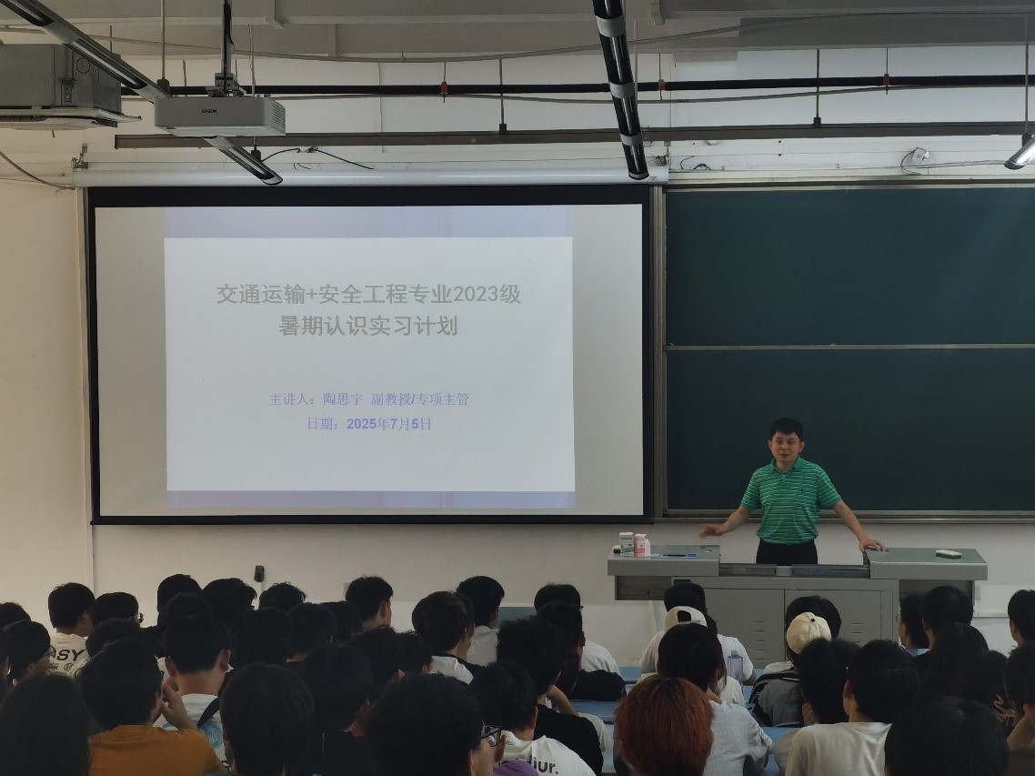 随着紧张而充实的期末考试结束,2025年暑期实习工作正式拉开序幕。为了明确实习目的、实习要求,7月5日下午14:30,伟德国际1949在犀浦校区X2218教室召开了2023级交通运输专业(含詹班、茅班)、安全工程专业暑期认识实习动员大会。学院对此次实习高度重视,学院教学主管王坤和专项主管陶思宇参加伟德国际19492023级暑期认识实习动员大会。实习动员大会由陶思宇副教授主持。