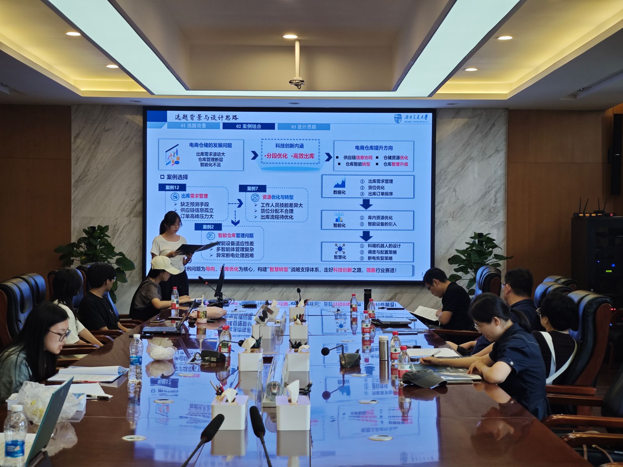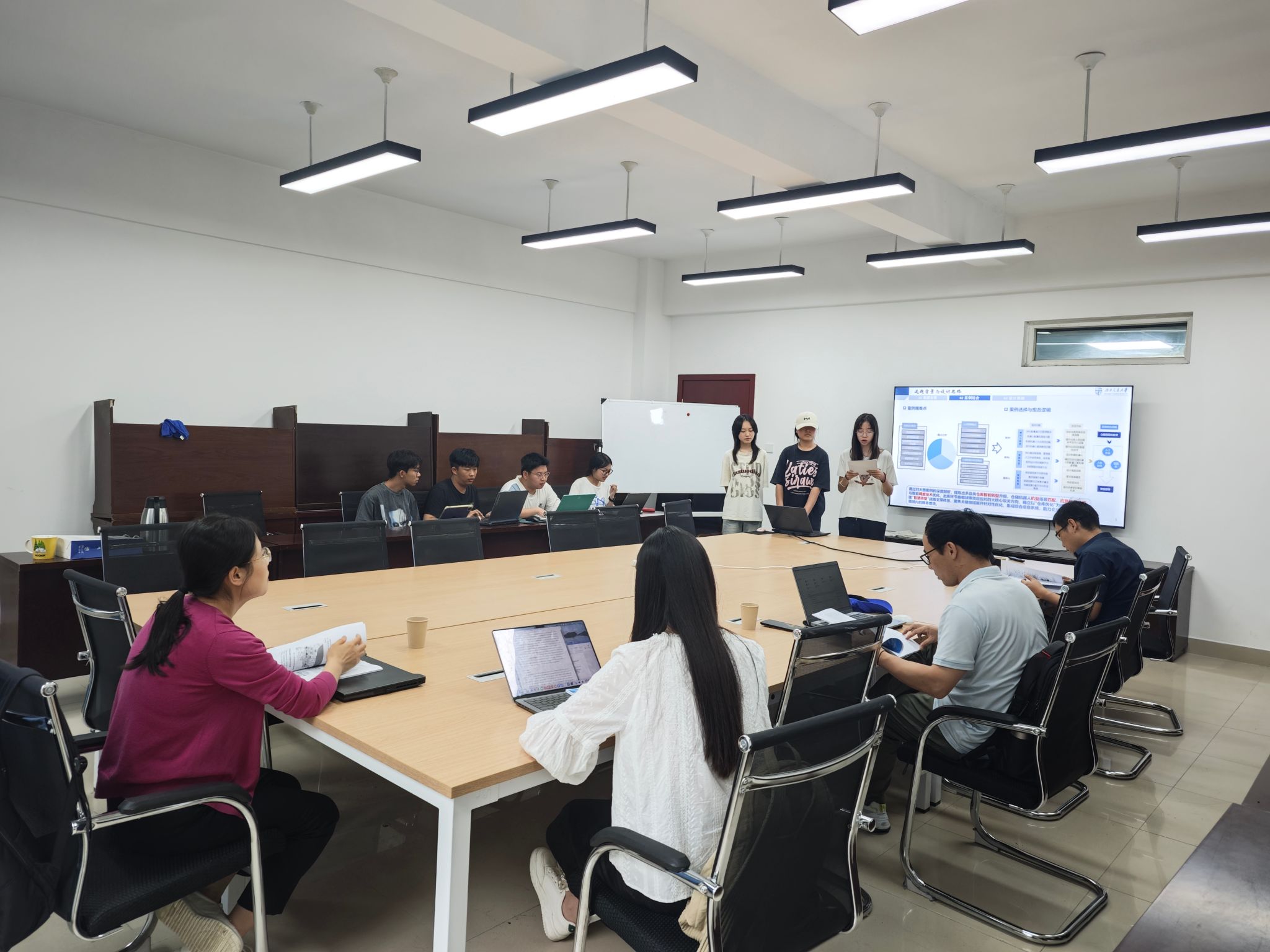 实地考察结束后,学院于7月11日组织复赛辅导。经过前期知识积累与实地学习深化,各参赛队伍在方案呈现上取得显著进步:仿真演示更为直观生动,建模与算法求解过程严谨清晰,应用场景构想明确具体。各队在优化初赛案例组合思路的过程中,着力聚焦方案完善存在的技术瓶颈与逻辑难点。