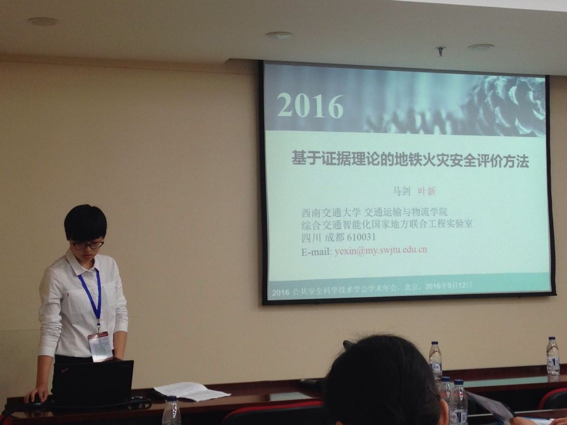 From September 11 to 12, 2016, Ye Xin, a graduate student majoring in safety engineering (guided by Ma Jian) attended the 2016 International Conference of Public Safety Science and Technology held in Beijing. The 2016 International Conference of Public Safety Science and Technology was jointly organized by the China Association for Public Safety (CAPS), Public Safety Institute at Tsinghua University and Hospital of the Armed Police Contingents.