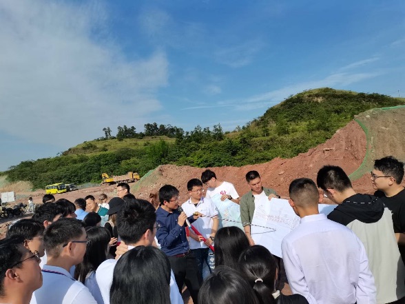工程师们在正在进行土方作业的川南城际临港站工点为同师生们带来了一场“实景课堂”,由公司员工、中铁二院土建三院三位优秀的工程师杨举明、杜连涛、陈霞,为师生们讲解了站场的整体布置规划以及宜宾枢纽的演变过程。在讲解过程中同学们充分结合课程中学习到的知识,对临港站的选线、站场布置等进行了拓展性的思考。“尽信书,不如无书”同学们通过实景课堂,充分认识到了学习的知识只有有效地运用到工程和实践中去,才会发挥其效用。
