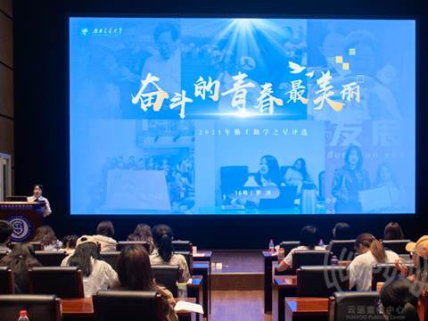 随后,2019年勤工助学之星获得者郑帅分享了自己的感悟与收获。他从感恩和励志作为切入点谈到了他自己的勤工助学的经历和所收获的知识与能力,表达了自己对母校的热爱,对身边同学、家人、老师的感恩。