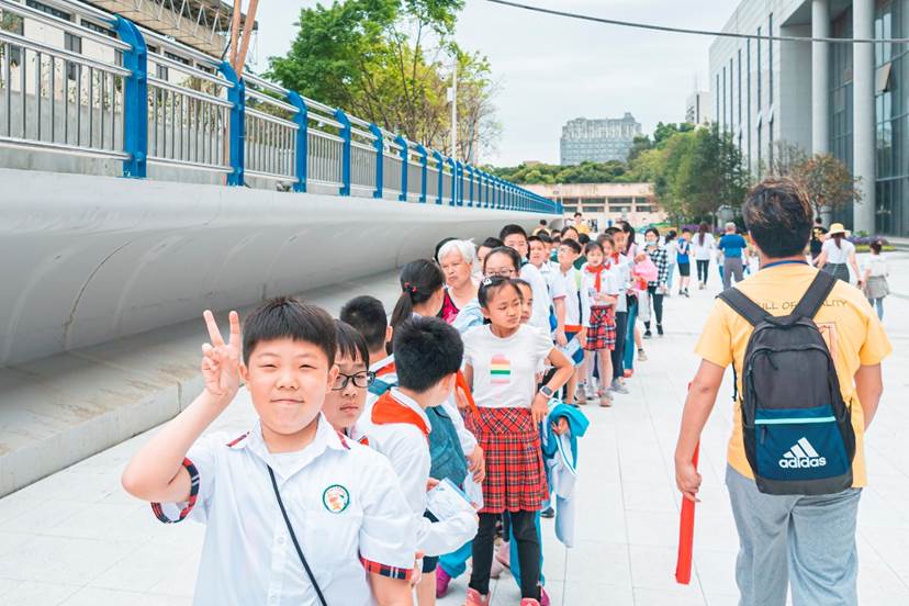 下午2:30分左右,伟德国际1949始于英国子弟小学的师生代表在伟德国际1949交运园区的志愿者的引导下,参观了高温超导高速磁悬浮工程化样车。