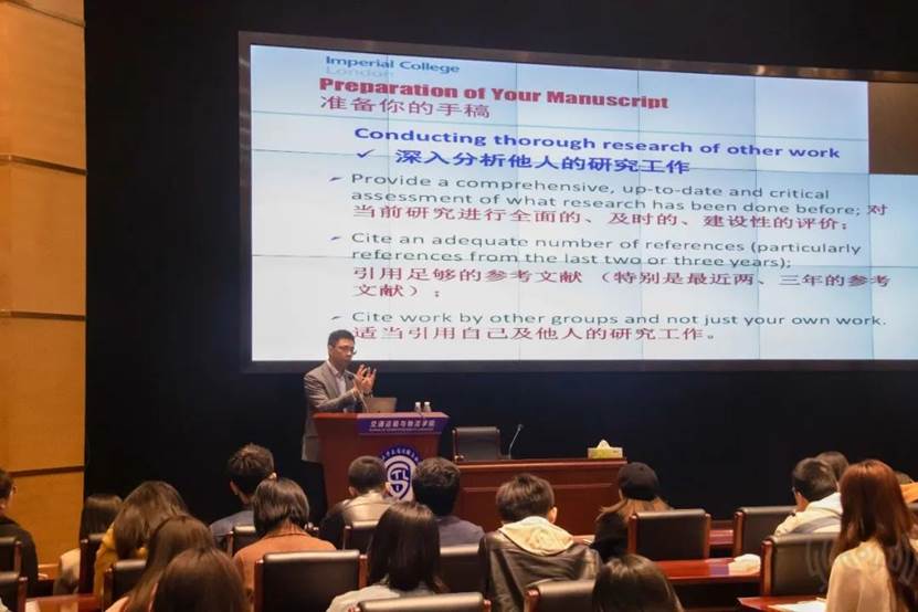 讲座的第二部分是学术写作的规范。韩教授从科技论文构思、撰写、投稿、评审等多个方面对其进行讲解。他多角度地介绍了发表研究成果的重要性以及学术期刊的出版趋势,这不仅提高了同学们的积极性,还帮助他们了解了当前的形势。随后,韩教授解决了在上一部分中提出的问题——如何选择研究课题,他强调了在选择时要考虑研究的外沿是什么。紧接着,他对论文的每一个部分都进行了详细的介绍。在论文提交之后,收到“修订并重新提交”这种结果不可避免,所以韩教授提醒同学们不要忽略评审专家和编辑的修改意见,要认真对待并且处理每一条修改意见。之后,他结合自己作为编辑的经历逐一讲解了同行评审的流程,并对这过程中容易出现的自我剽窃、一稿多投等问题进行了讲解。
