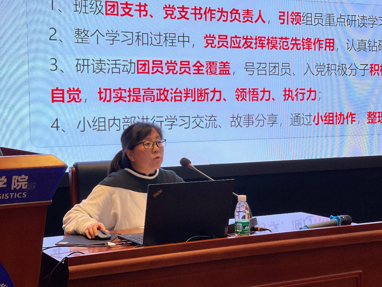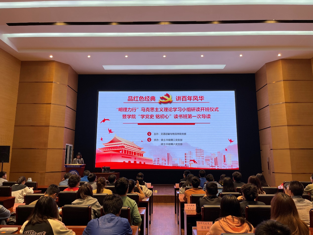 学工组张素风老师首先为大家介绍“明理力行”理论学习小组活动的总体安排,对研读活动的主题、背景、内容和安排进行了介绍。交运硕士2020级第二党支部、第八党支部、交运学院2020级各团支部和学院3个科研团队的党员组成“明理力行”马克思主义理论学习小组,开展基于中国共产党百年历史的党史研读分享系列活动,活动分三个阶段进行:第一阶段“追寻党史记忆,感怀峥嵘岁月”——导读、自主研读;第二阶段“重温党史故事,凝聚前行力量”——小组研讨学习;第三阶段“讲述党史故事,感受百年风华”——研读分享会。本次活动将通过党史学习,结合学科和行业,回顾百年交通史,中国铁路史,品读在救国、兴国、富国、强国历程中百年交通从艰难到快速发展的历程,激发同学们主动为交通强国战略发奋学习的行动自觉。