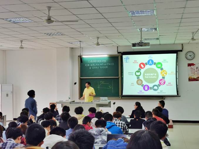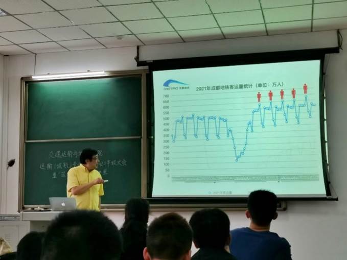 大会伊始,朱志国老师从各大城市的城轨运营公司客运量切入,为同学们展现了不同城市基于不同风貌和生态的市民出行特点,循循善诱,深入浅出地分析了城市轨道交通发展现状。随后,朱老师从设计、规划、融资和运营等多个方面,系统全面地向同学们阐述了轨道交通产业的相互联系和前景趋势。譬如在城市轨道交通运营领域,以成都轨道交通为例,通过对成都地铁运行控制中心、线网指挥中心(COCC)的工作体系、方式、效率等方面的介绍和比较,让同学们对城轨运营有了更深入的了解,激发了同学们对自己所在专业深入研究的兴趣。随后,在交流答疑环节中,朱教授耐心、风趣地一一解答了同学们在学科专业、未来就业和前沿等方面的困惑,并鼓励同学们力争上游,对未来怀有雄心壮志,同学们认真聆听和积极互动后纷纷表示受益匪浅,深受鼓舞。