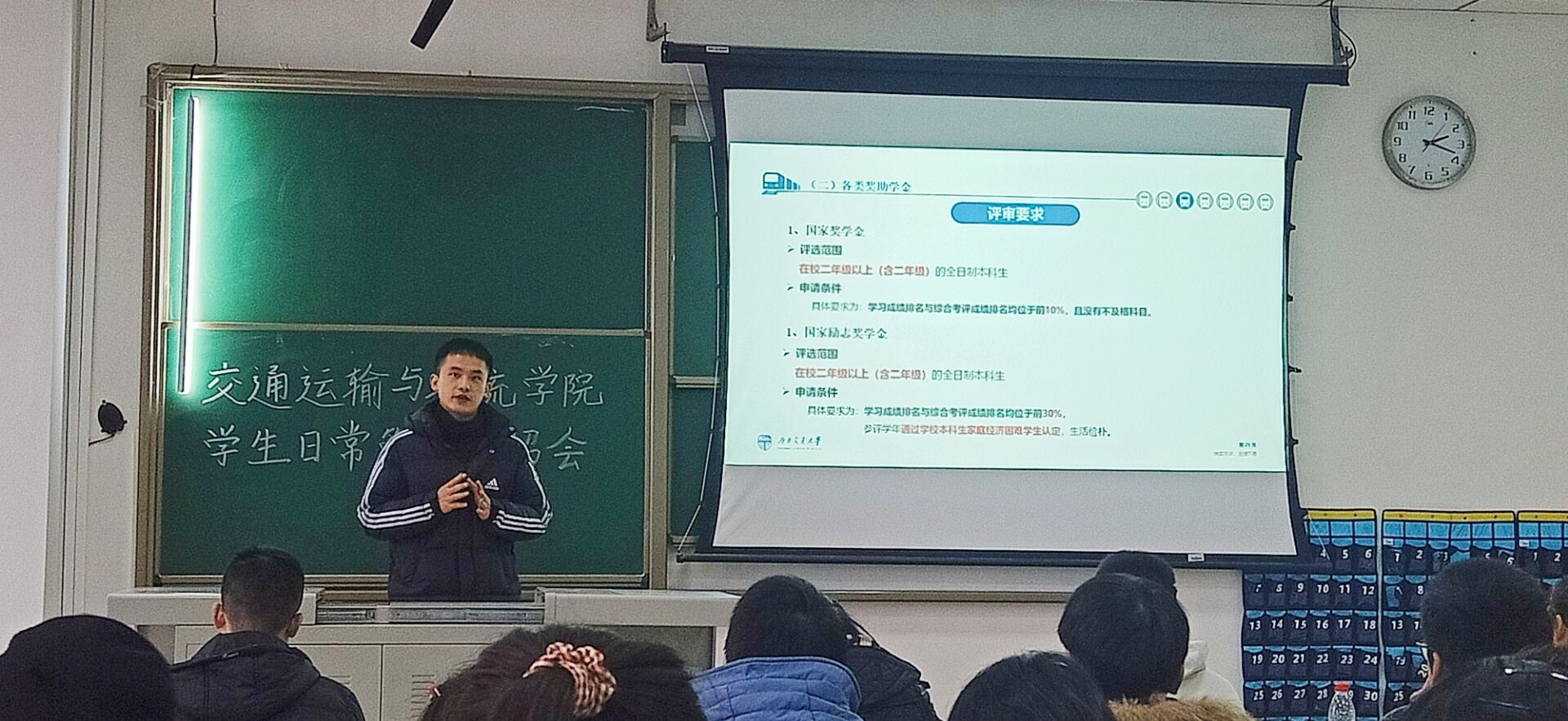 公司党委李国芳副书记,学院团委王炎冰书记、2020级交运3班班导师周鹏老师,学院辅导员李冠辉老师、唐涵老师以及全体2019级、2020级交运城轨学子参加会议。会议由学院学工组副组长张素风老师主持。