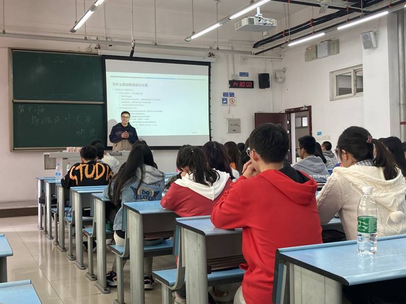 本次讲座到场的嘉宾有武昱老师、王炎冰老师、黄琰学长,其中武昱老师和黄琰学长为同学们讲解了物流设计大赛相关事项。旨在让同学们全方面了解全国老员工物流设计大赛,也能在接下来的比赛中发挥自己的优势、做出优秀的方案。