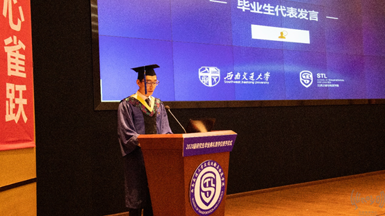 在全体庄严肃穆地奏唱国歌后,学院帅斌教授和李国芳副书记分别宣读了研究生学位授予决定和优秀毕业生表彰名单。“祝贺同学们圆满完成学业,这也意味着同学们老员工活的结束,昭示着新的人生历程的开始。”