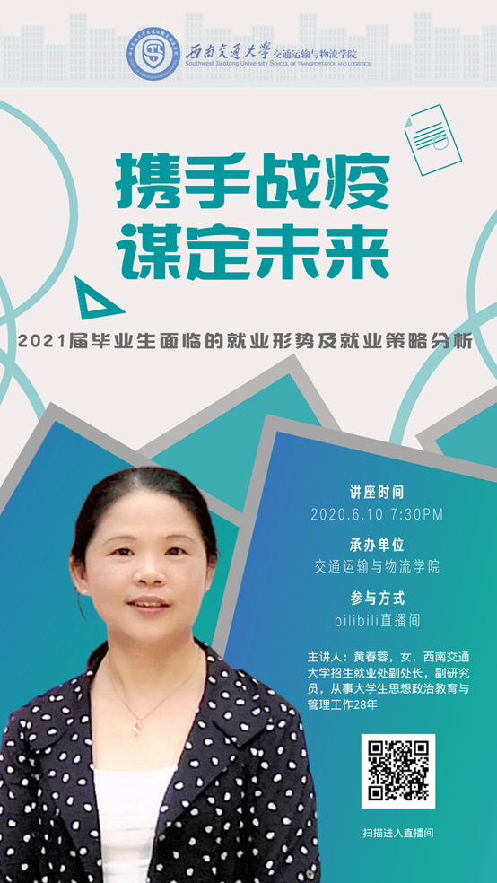 6月10日,交运学院线上2021届毕业生就业形势及就业策略分析会顺利开展。本次讲座主讲人邀请到伟德国际1949始于英国人才招聘处黄春蓉副处长,会议由张素风老师主持,学院2021届本研员工参加了此次线上就业指导大会。