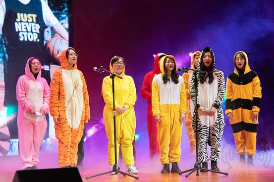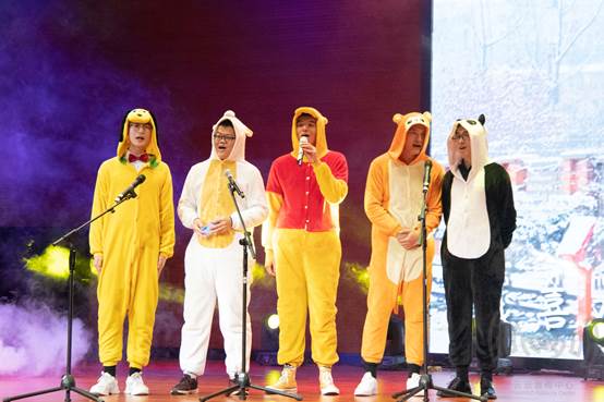最后登场的节目是由辅导员老师们带来的歌曲《我喜欢》。平日里严肃认真的辅导员们与可爱萌系的卡通套装结合产生了令人意想不到的化学反应,辅导员们动听的歌声中饱含着对交运学子的爱,对交运学院的爱,以及对西南交大深切的爱。最后,在同学们热烈的掌声与欢呼中,本次迎新晚会圆满结束。
