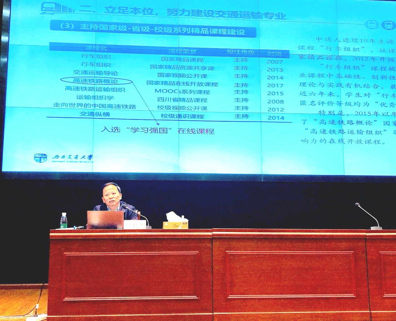 彭其渊教授从牢记使命,坚守教书育人第一线;立足本位,努力建设交通运输专业;脚踏实地,潜心致力于科学研究;尽心尽责,全力推进学院发展四个方面分享自己从事教育事业30多年来的所思所想所感。