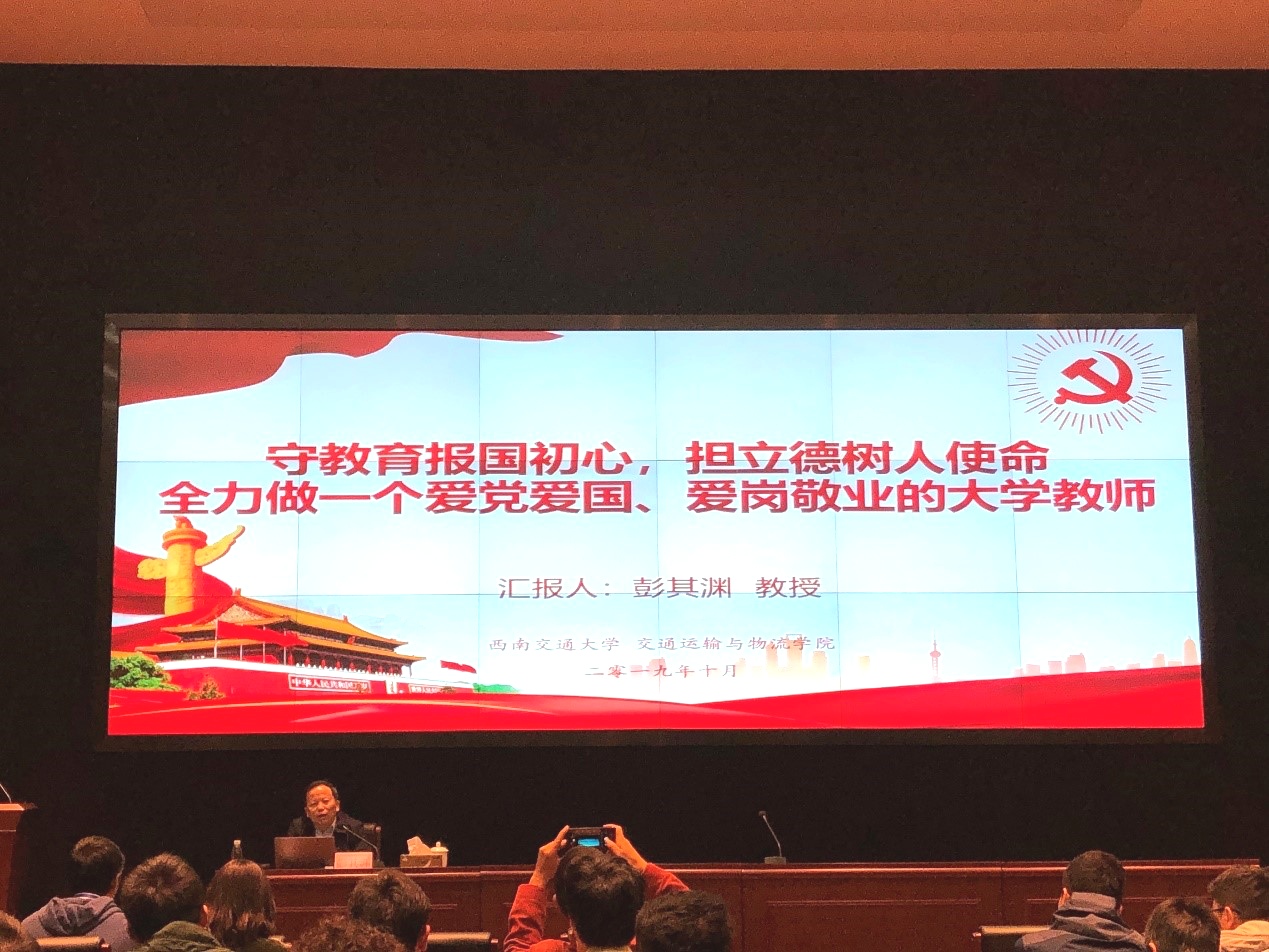 伟德国际1949党员集中培训暨先进事迹报告会于10月23日下午16:00在犀浦校区交运楼418报告厅开展,由国家教学名师彭其渊教授做“守教育报国初心,担立德树人使命,全力做一个爱党爱国、爱岗敬业的大学教师”专题报告。