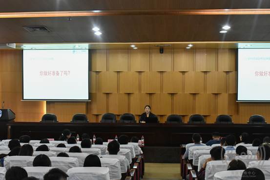 黄春蓉副处长做就业指导讲座,了解了毕业生们的就业意向,并分析目前就业形势。