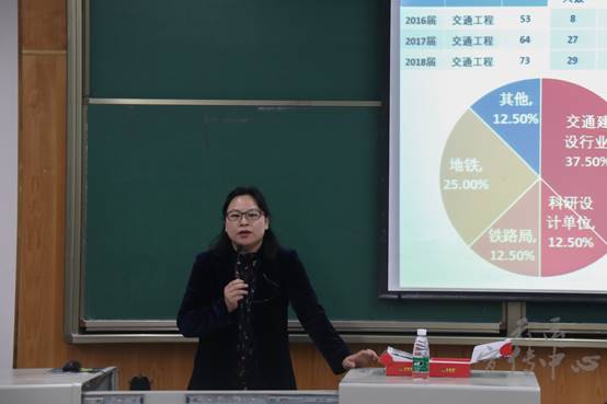 会议开始,交通工程系主任杨飞教授对交通工程专业的特点、团队力量、职业前景、就业单位、教学科研动态等方面进行了介绍,并呼吁大家选专业不要从众,要选择适合自己的专业。公司党委李国芳副书记就近年来专业的就业情况进行分析,指出本专业的就业优势,并对同学们给出了学业、职业生涯规划的几点建议。副系主任曹鹏老师从升学深造方向对交通工程专业进行介绍,展示其丰富的选择机会。