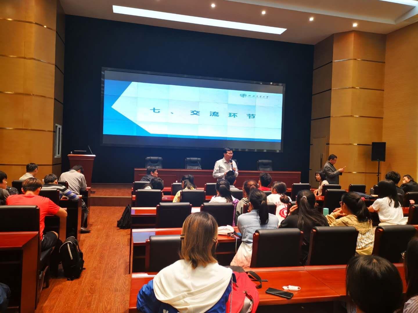 在互动环节中,同学们积极提问,与各位老师进行亲切交流。同学们普遍关注的问题是专业与今后发展平台的情况。各位老师与同学们详细分享心得,物流行业立足于交通,富有特色,同学们可以跨学科学习,培养自己的思维与能力,扩宽自己的就业面,增加自己的竞争力。