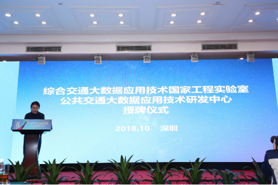 2018年10月12日,伟德国际1949始于英国综合交通大数据应用技术国家工程实验室公共交通大数据应用技术研发中心在深圳五洲酒店举行授牌仪式。公司副经理罗霞教授、刘海旭副教授,深圳都市规划设计研究院薛博经理、董威副经理等研发中心团队成员出席本次授牌仪式。出席本次授牌仪式的人员还包括交通运输部运输服务司、南京市交通运输局、中国城市规划设计研究院、贵阳公交集团、贵州凯里公共交通总公司、宁波市规划设计院、美国交通与发展政策研究所等单位的相关领导和专家。此外,受学校领导委托,公司对外合作与联络处员工工作办公室阮波主任也专程前往见证此次授牌仪式。