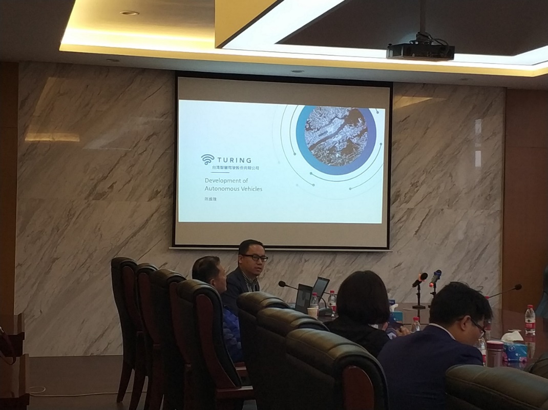 讲座主要由陈维隆董事长汇报,汇报从个人及公司简介、国内外自驾车发展、自驾车技术介绍、Turing(台湾智慧驾驶股份有限公司)的发展方向等四个方面展开。