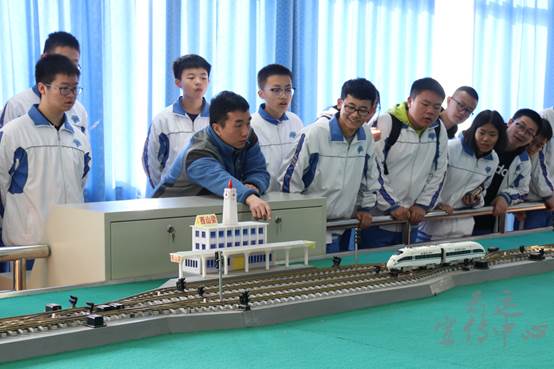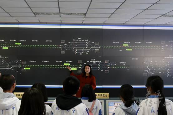 两校师生首先于图书馆前合影留念。随后,在雍腾老师与各志愿者陪同之下,成都七中实验学校师生团来到5号教学楼,分组参观了轨道交通信号与控制实验室、交通行为安全仿真实验室、高速铁路综合调度指挥仿真实验室、交通安全消防仿真实验室、列车运行与信号控制系统以及交通运输设备实验室。各实验室老师就相关领域知识为同学们进行讲解。同学们热情高涨,对这些实验室充满了好奇,仔细认真地聆听老师们的讲解。