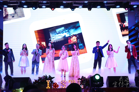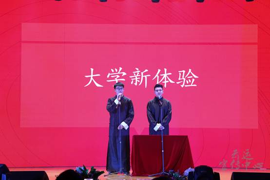 古风乐器演奏开启了第二篇章的序幕,高山流水,一泻千里。随后,雍腾老师带领员工们合唱一首《少年中国说》,唱出了中国少年的青春活力,坚韧不拔;唱出了中华民族的气节;唱出了祖国未来的希望。“敢将日月再丈量,今朝唯我少年郎!”。相声节目《大学新体验》则演绎了萌新在大学的磨合期里遇到的种种“槽点”,逗得台下的观众们抚掌大笑。
