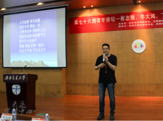 当问及崔志刚作为一名学长,对学弟学妹们有什么要求和期盼,他说到:“作为一名交大学子,我们的目标是要将公司打造成为世界轨道交通第一名校。”他指出,面临今后生活中的一些选择,要具备诗意的心和理性思考的头脑,做到文理交通,对知识均衡合理的分配。其实文理内在的机理是相通的,很多发展理念都是先从人文思维产生需求,然后迫使我们进行理性的研究,最后再次通过人文思维发散出去。做到文理交通,将来在面对更广阔的世界时,会有更多的机会和更好的前景。
