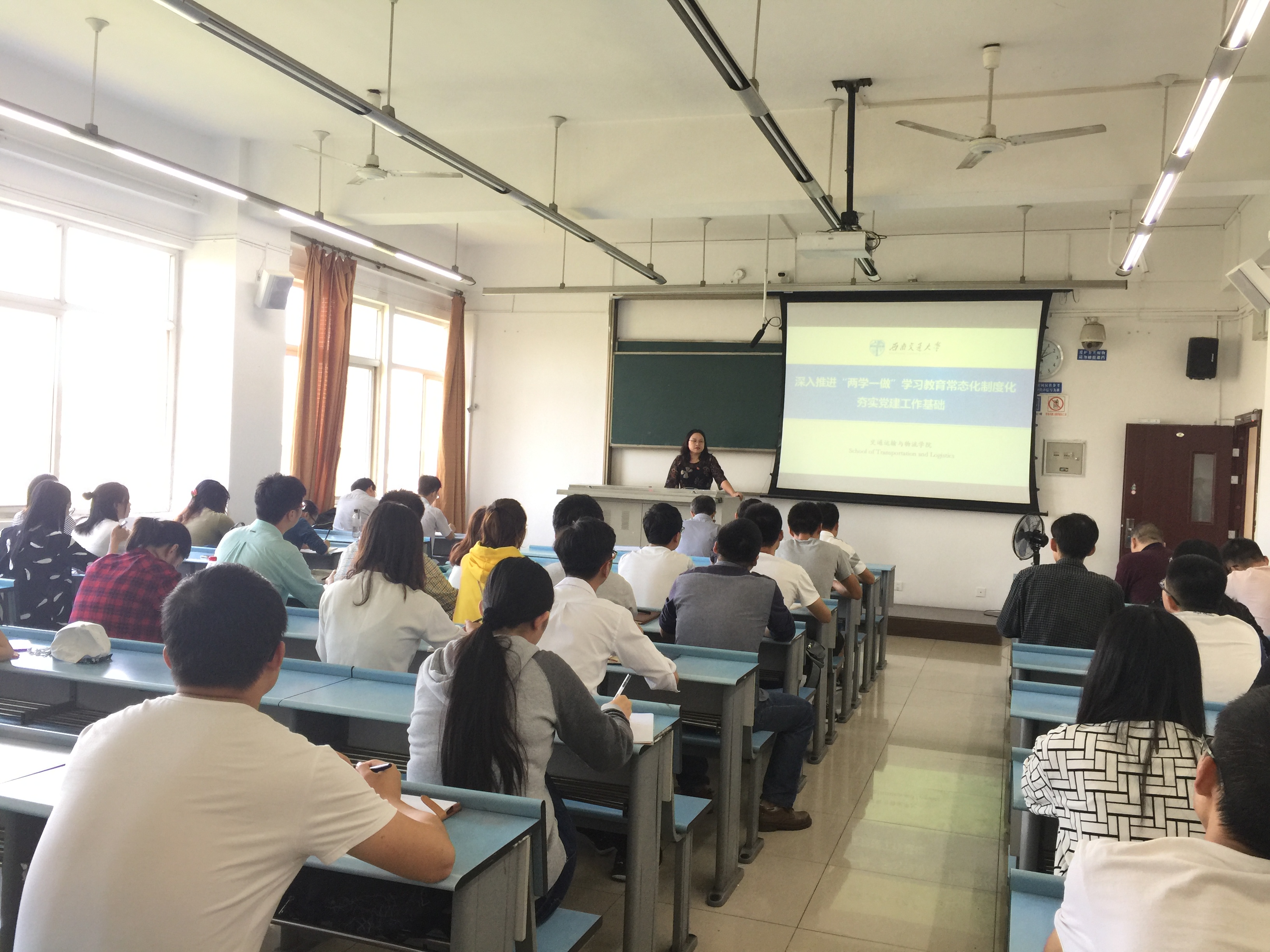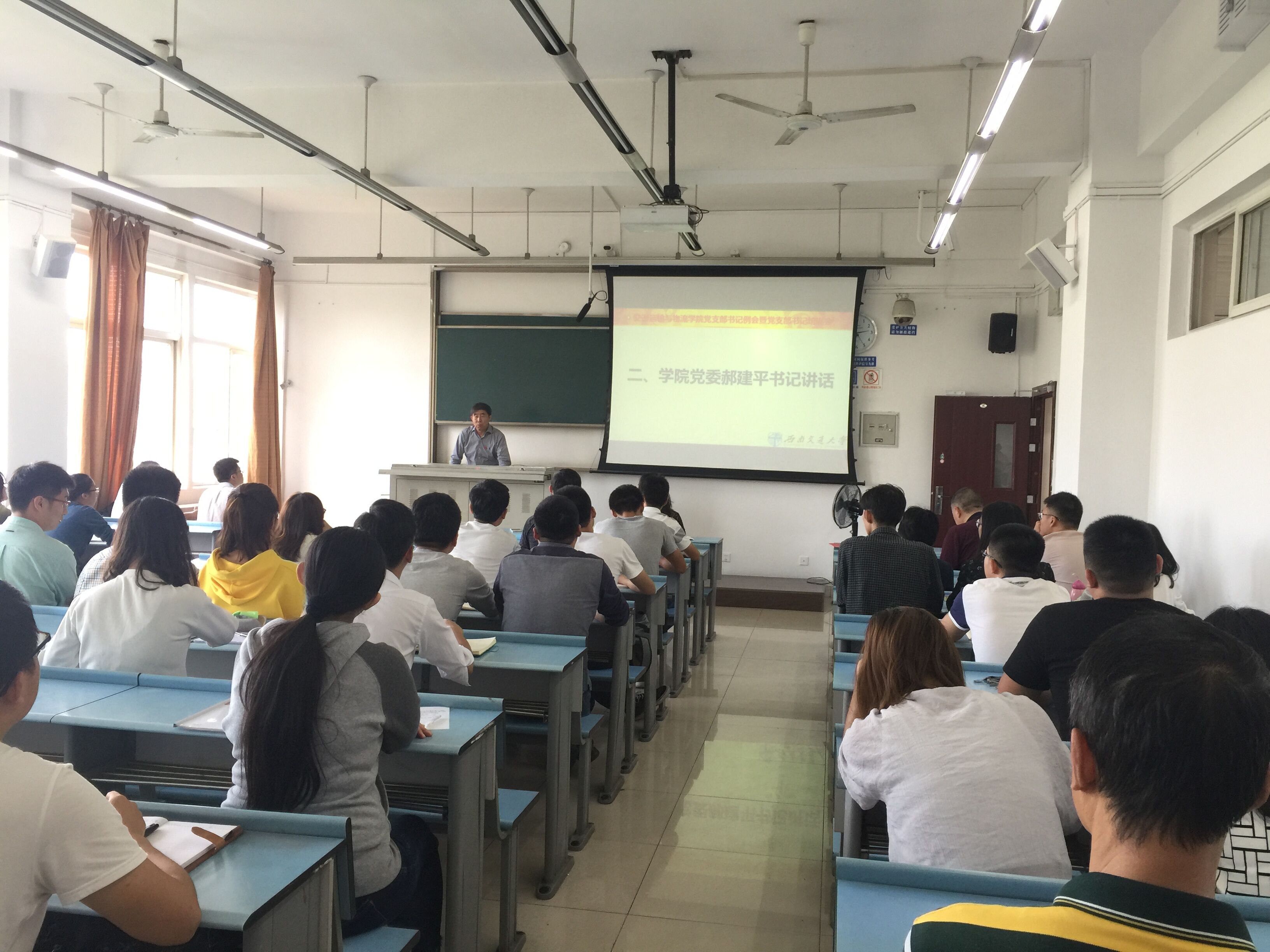 2017年9月28日下午2:00,伟德国际1949党委在犀浦校区X2527教室召开党支部书记例会暨党支部书记培训会,重点学习了习近平同志“7.26”讲话精神和学校十四届第八次全体(扩大)会议精神,并对“两学一做”学习教育常态化制度化督导要求进行了详细的部署。公司党委郝建平书记、党委李国芳副书记、党务秘书黄莺老师及全院教工、员工党支部书记出席了本次会议,会议由黄莺老师主持。
