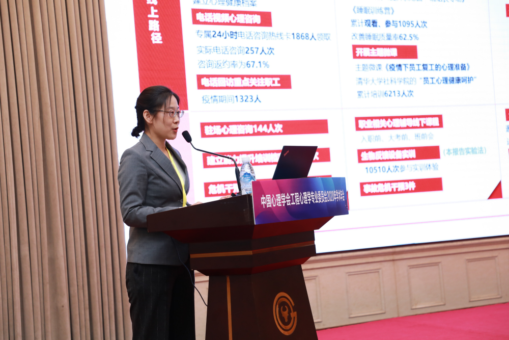 国家能源集团朔黄机辆分公司经理助理鲁颐琼报告了“实验法探究员工关爱中心对重载列车乘务员压力调节及生产安全的作用——以国家能源集团朔黄铁路为例”。