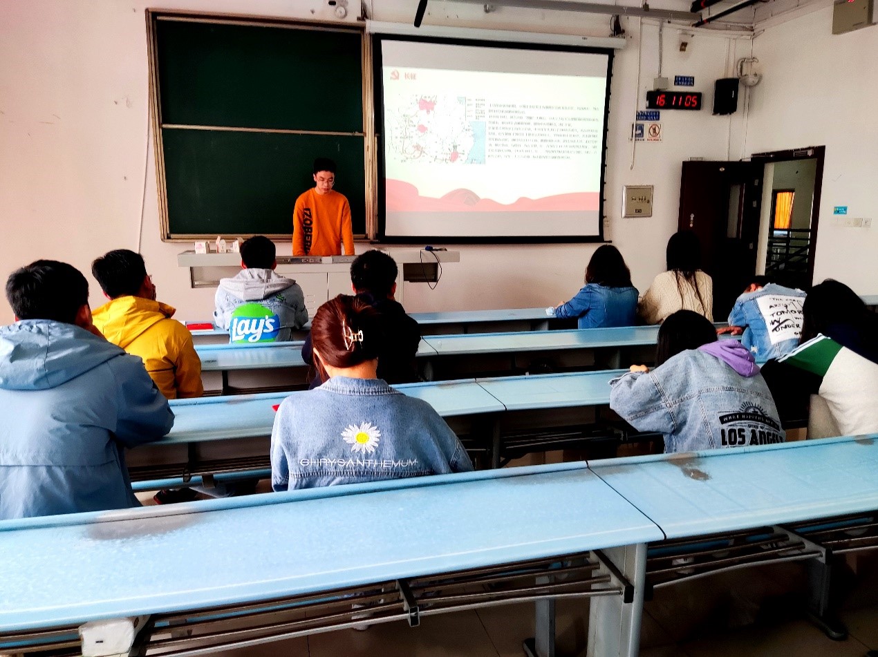 随后,硕士19级第五党支部方嘉欣同志详细为大家介绍了中国共产党成立、遵义会议、长征胜利、党的七大、中华人民共和国成立等重大事件。他呼吁,所有同志们都要铭记仁人志士和革命先烈们英勇斗争的革命精神,牢记历史,勿忘国耻,弘扬爱国精神。