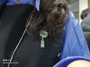 胸针靠近心脏,“胜意”是学院对考研学子最诚挚的期盼:心中戒骄戒躁、“战场”胸有成竹、生活万事胜意!