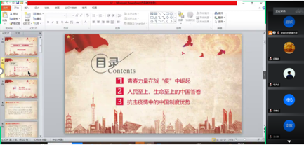 微党课的开展让党员同志既看到了青春之花的绚丽绽放,看到了中国制度的优势所在,也看到了科学技术的庞大力量,进一步增强了党员责任感与使命感,激发了党员同志们的爱国情怀,党员同志们表示体会颇深,在腾讯会议室、QQ群等线上平台中纷纷发表学习感悟。