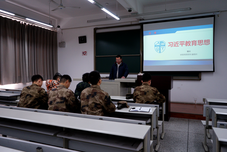 2019年12月5日下午13:00,学院蹇明副经理在犀浦校区9号教学楼为本科国防生党支部党员同志讲授“以习近平总书记关于教育的重要论述指引中国教育前进方向”主题党课