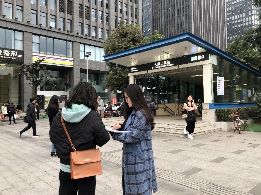会后,为进一步进行成都轨道交通TOD建设的实践调查,支部成员们在天府三街站的地铁口进行了问卷调查,后期将根据此次交流学习和调查问卷的结果进行整理,并形成研究报告。