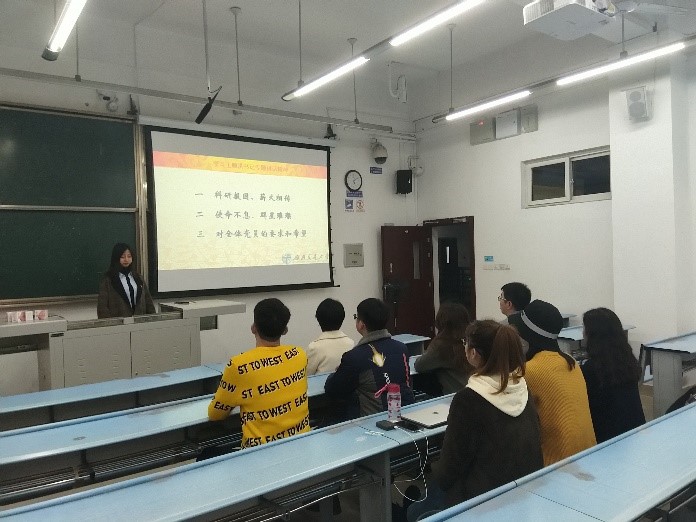首先,赏珂祺同志带领全体党员从王顺洪同志讲话内容的三个方面来学习了王顺洪同志专题讲话精神。首先是科研报国、薪火相传,在我国交通事业的发展历程上,从最初的交通运输落后到如今的交通设施设备完善,无不彰显着无数铁路人的艰苦奋斗、无私奉献。至新中国成立以来,交大人参与了众多铁路工程的建设,他们用自己的决心和行动诠释了交大人的使命和担当。第二是使命不息、群星璀璨,在“竢实扬华,自强不息”交大精神的指引下,广大师生员工共同书写了交大的辉煌历史。全体党员深入学习了著名交大人茅以升董事长、陈能宽员工、朱铃教授、翟婉明院士的感人事迹,从他们的事迹中,全体感受到了他们闪烁的匠心精神。