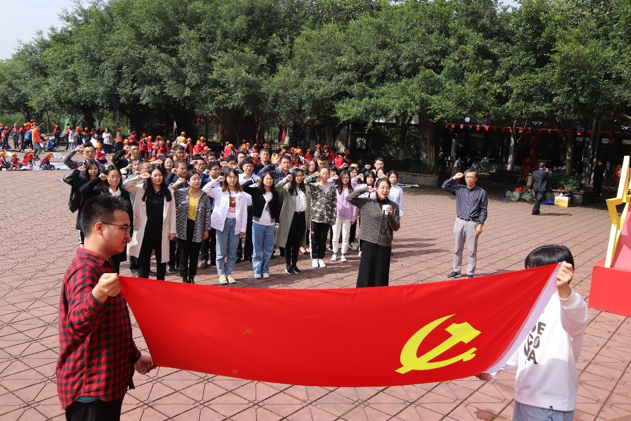 在红色广场,追寻先烈足迹,重温入党誓词。师生党员面向党旗,重温对党庄严而神圣的誓言,让每一位党员的心灵再次受到震撼和洗礼,更加坚定为共产主义事业而奋斗的理想信念。