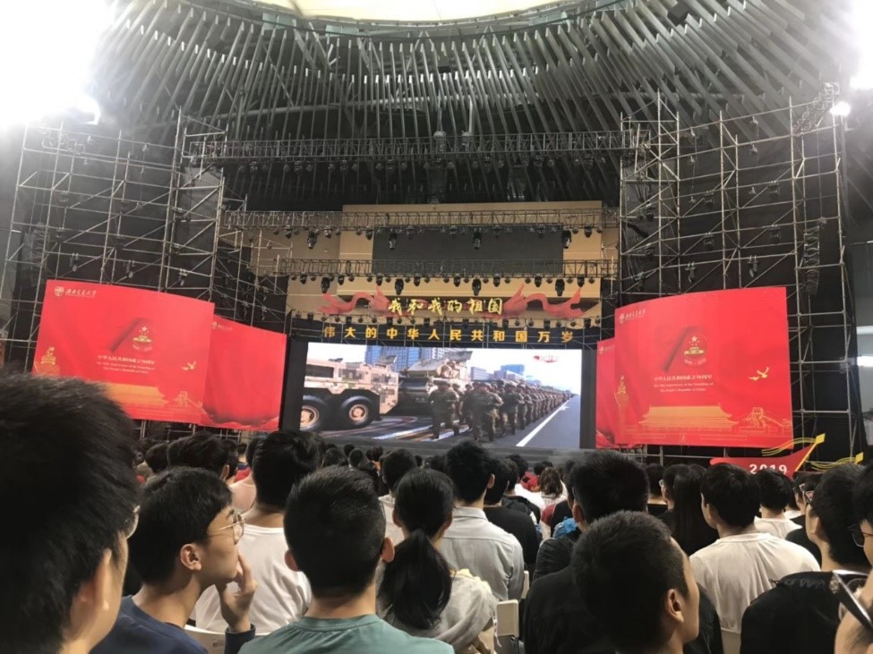 2019年10月1日,为庆祝中华人民共和国成立70周年,为祖国母亲庆生,共同祝愿祖国母亲更加繁荣昌盛,研究生各支部统一组织党员同志通过在交大体育馆、宿舍、家中等多种方式观看新中国成立七十周年大阅兵直播。