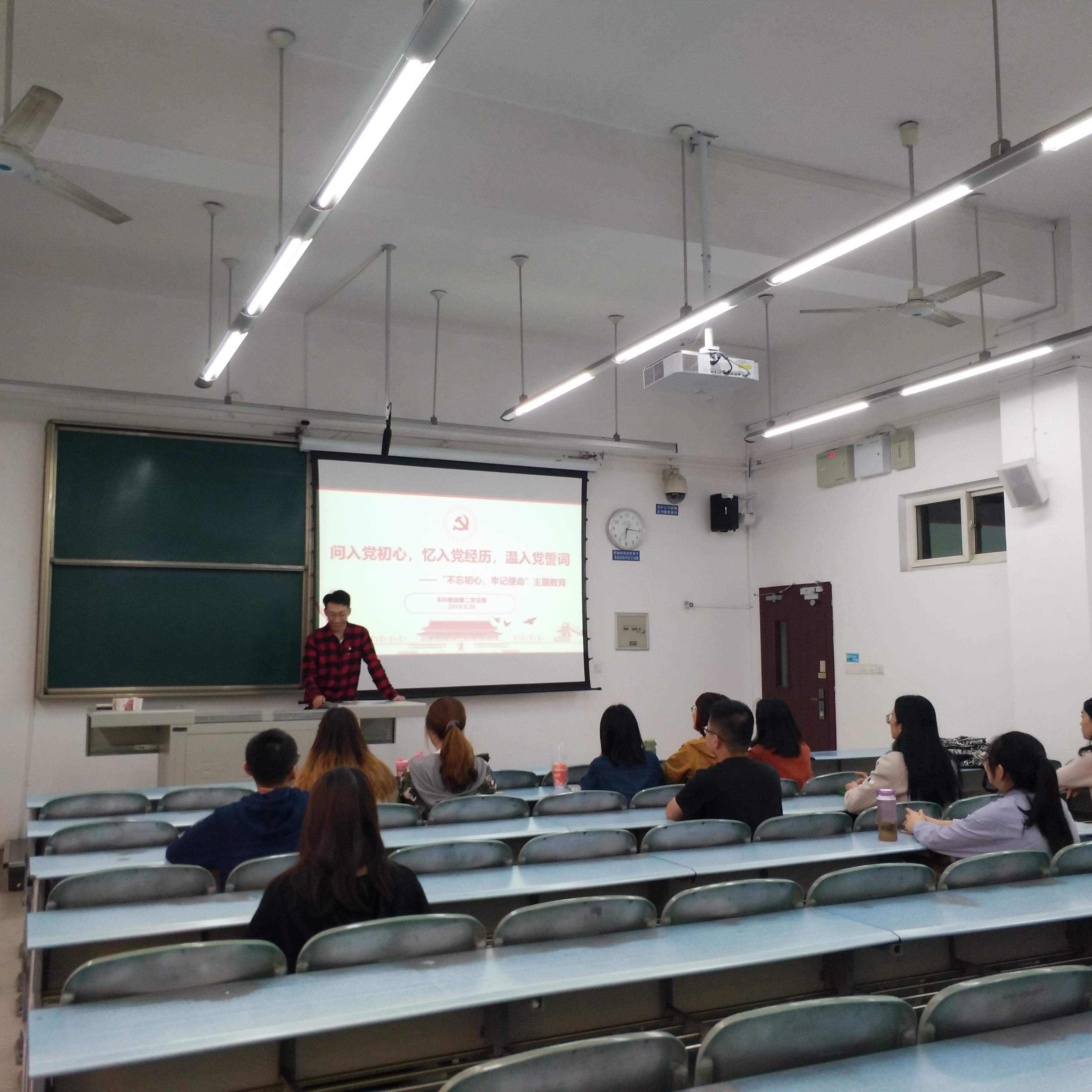 为纪念中华人民共和国成立70周年,同时提醒支部党员同志不忘入党初衷,本科物流第二党支部于2019年9月26日开展问入党初心,忆入党经历,温入党誓词——“不忘初心,牢记使命”主题教育活动。活动由本科物流第二党支部书记王昕鹏同志主持。
