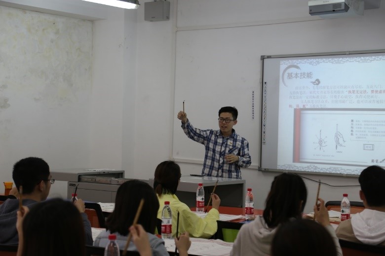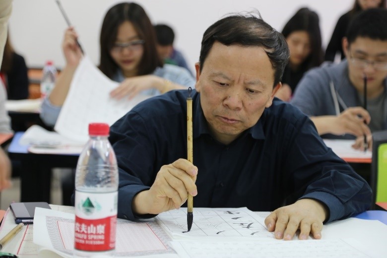 第三部分,由现任伟德国际1949始于英国老员工书画协会会长陈锦涛同志介绍中华传统文化瑰宝——书法艺术。从书法入门的楷书、隶书到行书、草书;从最基本的笔握手法到横竖撇捺,陈锦涛同志悉心讲解、耐心演示。讲解过程中,大家拿起手中的毛笔跃跃欲试,在准备好的宣纸上开始模仿写好一横、一竖,再看看周围同学的作品,仔细琢磨写作技巧,现场气氛十分活跃。随后,书画协会的三名同学进行现场指导,让党员们通过实践走近传统书法艺术。