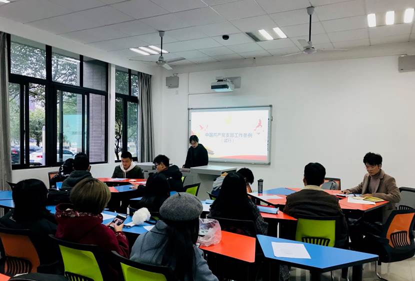 为贯彻落实新时代党的组织路线,奋力开创党支部建设新局面。2018年11月29日硕士18级第七党支部在X4133教室集中学习了《中国共产党支部工作条例(试行)》(以下简称《条例》)。本次活动由第七党支部组织委员唐昱恬同志主持。
