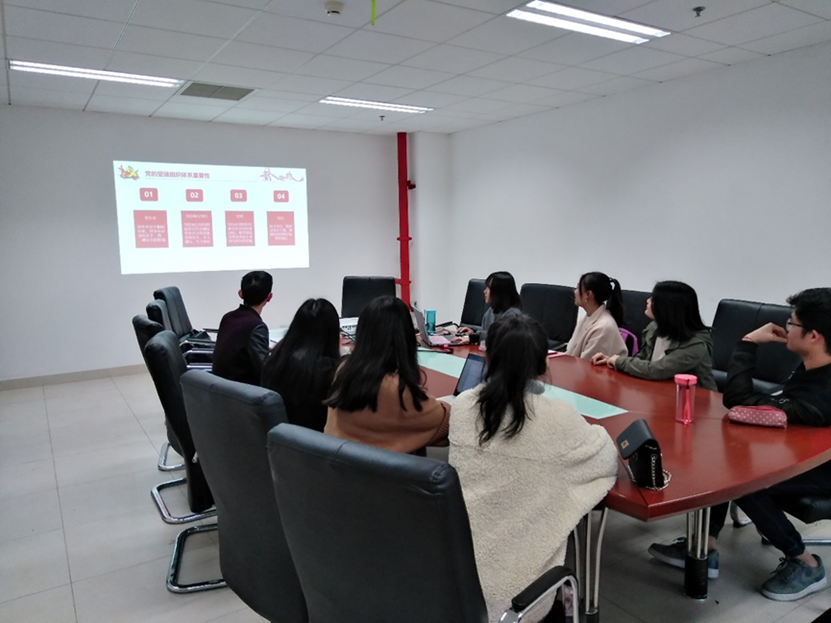 2018年11月15日星期四下午四点半,伟德国际1949硕士2017级第三党支部于犀浦校区综合楼757开展“切实贯彻落实新时代党的组织路线,开创公司党的建设新局面”主题党日活动。本次活动由支部成员张杏蔓同志主持。