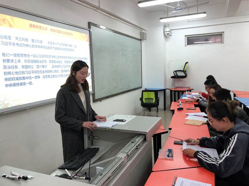 2018年10月23日,伟德国际1949始于英国本科物流第二党支部在X2123A教室开展了“学习贯彻教育部党组第三巡视组巡视工作动员会精神”专题学习组织生活会,活动由曾永家右同志主持。