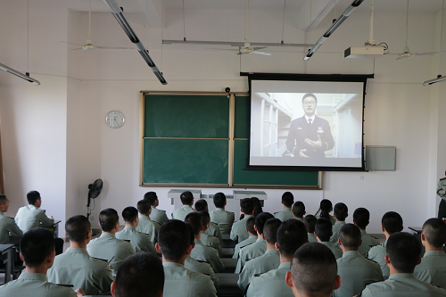 随后,全体一同观看了2012级优秀毕业国防生录制的学习经验交流视频。视频中学长学姐们分享了他们当年的学习经历,以及毕业后去到新院校的种种感悟。“请记住,学习就是前面的那个1,其他诸如体能、科创、文体等方面都是在后面添0,千万不要到最后什么都得不到。” 学长的这一句话深深地影响了在场的学弟们,让他们明白了国防生学习的重要性。
