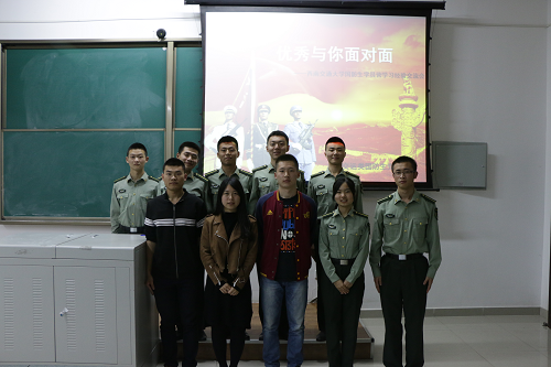 为解答2016级国防生在大学学习中的疑惑,引导他们在当今时代背景下努力学习,向优秀的学长学姐们看齐,做好时代的践行者,在实践中争先,学院本科交运类国防生党支部于4月21日晚7:00,在X9541组织开展了校级示范性党支部特色活动“探索宣传英雄路,践行使命争先锋”——本科交运类国防生党支部爱国教育宣传及学风建设主题系列活动之三,“优秀与你面对面”学习经验交流会。本科交运类国防生党支部书记李清滢老师及部分优秀高年级国防生出席此次活动。
