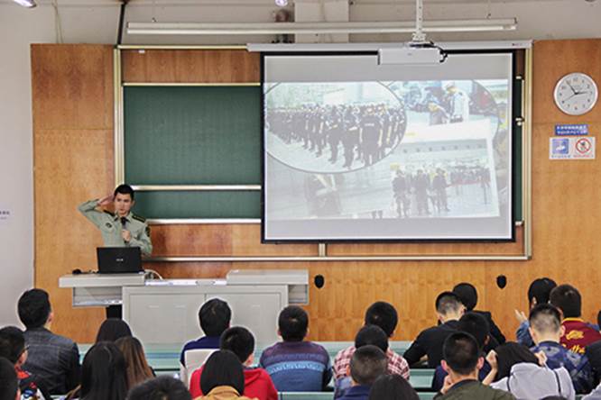 宣讲会以热播剧《人民的名义》中老党员陈岩石从入党的初心展开讲述抗日战争时期党员的“特权”开场。视频播放结束后,学院交运类国防生党支部和物流类国防生党支部的陈文杰、张欣、陈顺、刘经纬、刘佳文五名同学以历史的进程为线索,依次上台讲述了不同时期英雄人物的事迹。陈文杰同学首先介绍了3月26日本科交运类国防生党支部、物流类国防生党支部、本科交运第七党支部及部分国旗班同学在王炎冰老师、李清滢老师的带领下赴成都市烈士陵园进行的缅怀先烈的祭扫活动。张欣同学随后介绍了“对越反击战”中出现的代表人物。陈顺、刘经纬、刘佳文同学分别分享了防爆警察何晓雨、邱光华机组、女飞行员余旭的光荣事迹,赞美和怀念了这些为国牺牲、为革命事业献出生命的英雄人物。通过这样的分享,希望党员发展对象们可以铭记这个英勇无畏的人民警察,铭记3月14日国际刑警日,也铭记这个流血最多,牺牲最大的群体。在讲述邱光华这个为抗震救灾献出生命的英雄时,刘经纬同学还提到了我们身边的英雄——郭晨阳,希望同学们能以他为榜样,做有本事,有血性,有灵魂,有品德的交大人。女飞行员余旭在八一飞行表演训练的意外跳伞失败,光荣牺牲。党员发展对象们应该记住这个勇敢的女军人,同时,也肩负起自己身上的责任。