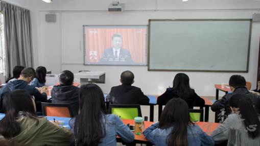 2017年10月18日上午9时,伟德国际1949始于英国伟德国际1949党委郝建平书记、李国芳副书记、员工工作全体辅导员老师、学院研究生、本科生党支部部分党员代表于X2109观看中国共产党第十九次全国代表大会开幕式。