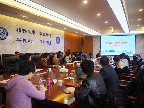 2020年10月23日下午在犀浦校区交运楼417会议室举行了学位与研究生教育改革发展系列研讨活动之研究生日常管理工作研讨会,蹇明副经理、博士教务员李娜、硕士教务员陈燕、研究生教务秘书李国旗老师出席了会议。会上老师们结合会议精神和学院实际情况,把握研究生教育工作发展的大方向、大趋势,针对导师和员工关心的问题开展讨论,围绕研究生教育工作畅所欲言,提出意见和建议。