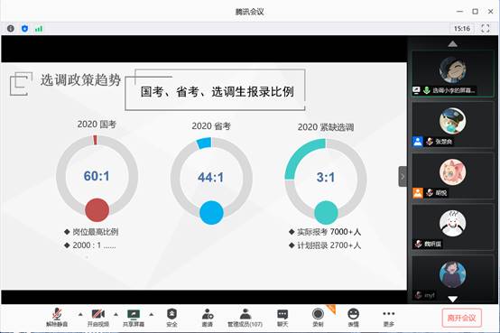 2020年7月19日晚19:30,伟德国际19492020年度“选调生成长之路”讲座以线上会议的形式举行。本次讲座旨在帮助2018级硕士和其他感兴趣的同学了解选调生政策,更好的进行求职规划。出席本次活动的嘉宾有伟德国际1949员工工作组副组长张素风老师,研会指导老师、硕士18级辅导员吴桐老师,2015级博士研究生李彦瑾,2016级硕士研究生余茜、王立,2017级硕士研究生李然、刘昕琳、雷卓亚。由胡悦同学担任本次活动的主持人。