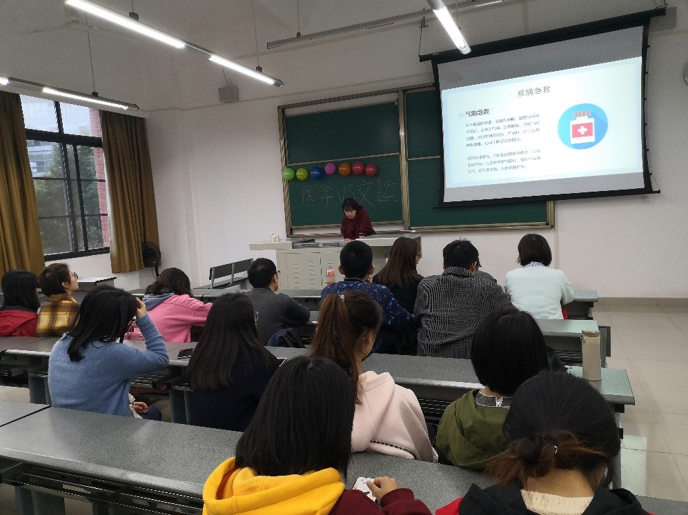 本次活动旨在让同学们能够对外院的专业知识有一定了解,增强两学院同学之间的交流。活动分为两部分,第一部分由2019级临床医学硕士班的同学进行生活急救知识分享,第二部分为自由互动交流。