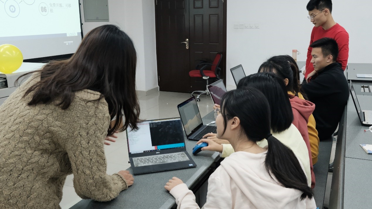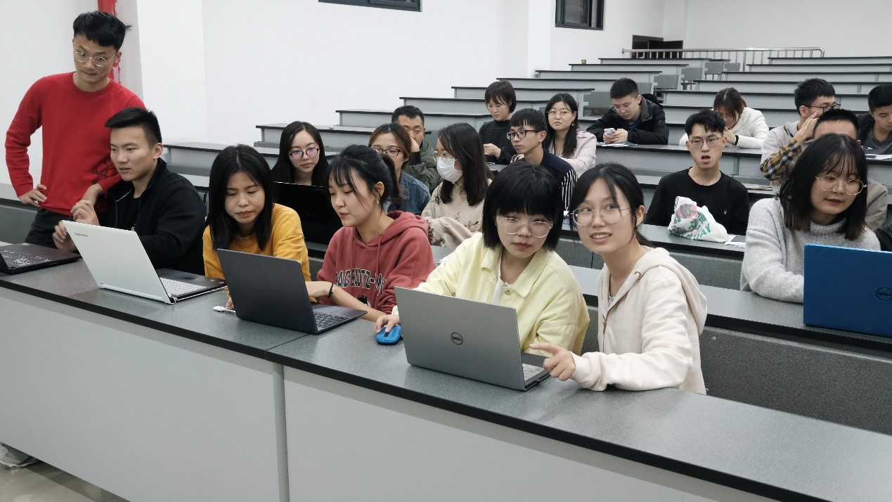 最后是互动交流环节,班级统计了大家对于python知识掌握的熟悉程度,并进行了科学合理的交流安排,确保每一个交流小组中至少有一位对python语言较为熟悉的同学。此外,为了提高大家的学习兴趣,在实践操作交流中,陈鹏和李小飞同学还以python编写一个猜数据的小游戏,以此作为分享内容,让大家在轻松的氛围中学习。