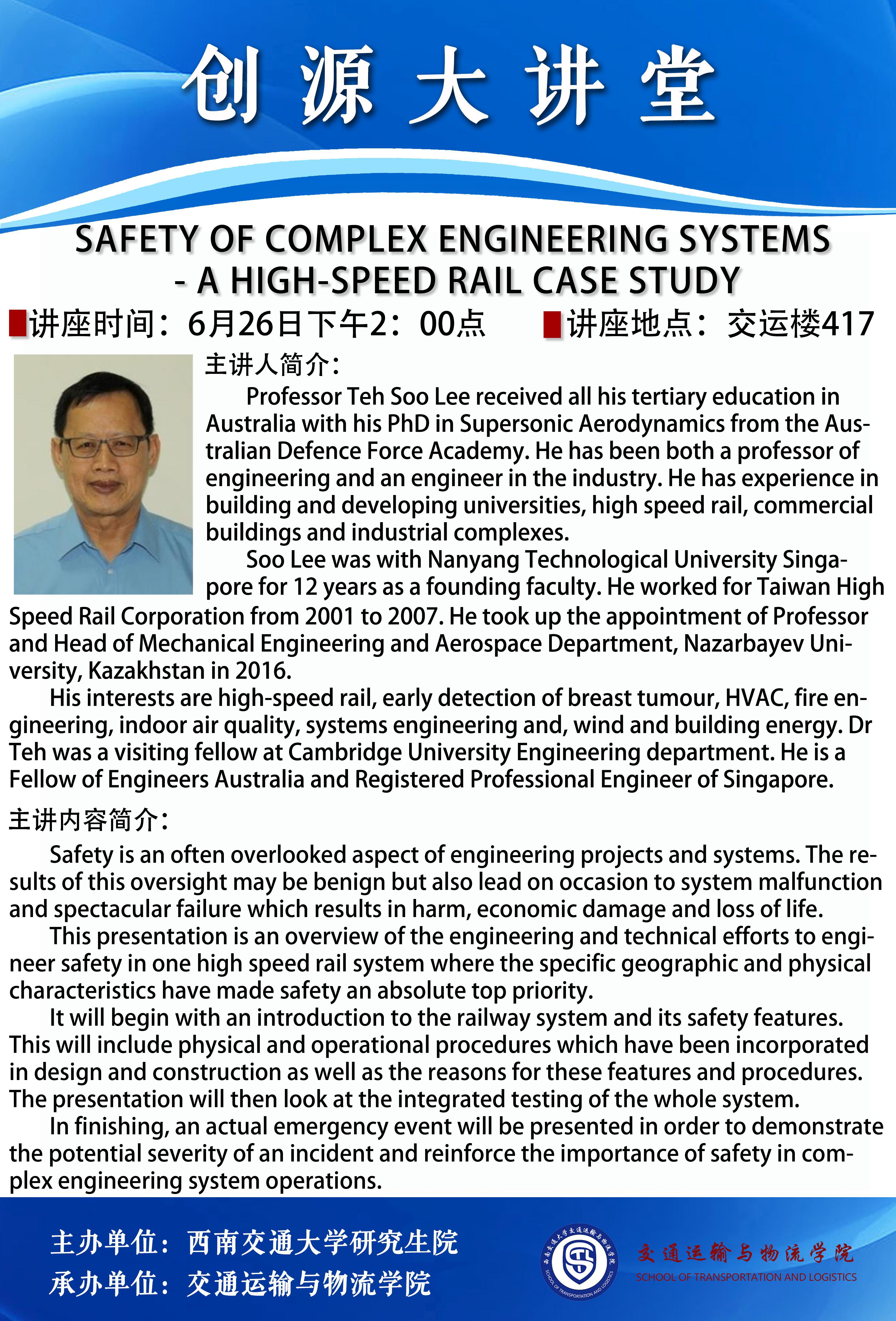 Safety of Complex Engineering Systems - A High-Speed Rail Case Study