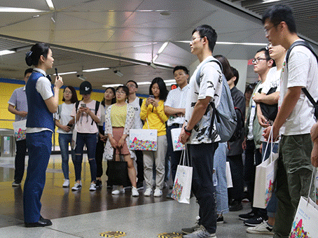下午,全体成员步行前往世纪城地铁站,并在运营一公司火车南站站区副站区长张司函的带领下,参观了世纪城地铁站车站调度室,了解了该地铁站的基本概况、如何组织早晚高峰人流等。张司函的一番讲解让同学们对城市轨道交通有了更加清晰直观的认识。