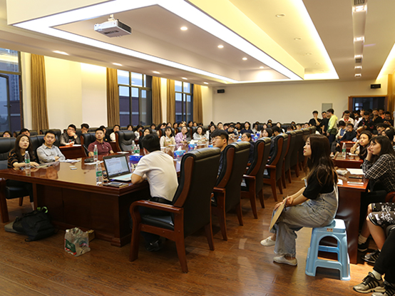 然后,已有两年工作经验的师宇同学将自己的工作经验进行了分享,并根据自己的亲身经历向同学们提出了几点建议:在备考上,要“早”——早学早问早打听早了解;在学习中,要“实”——实学实问实研究实动手;在工作中,要尽量做到“多”——多动手多动脑,也要“少”——少抱怨少自得。